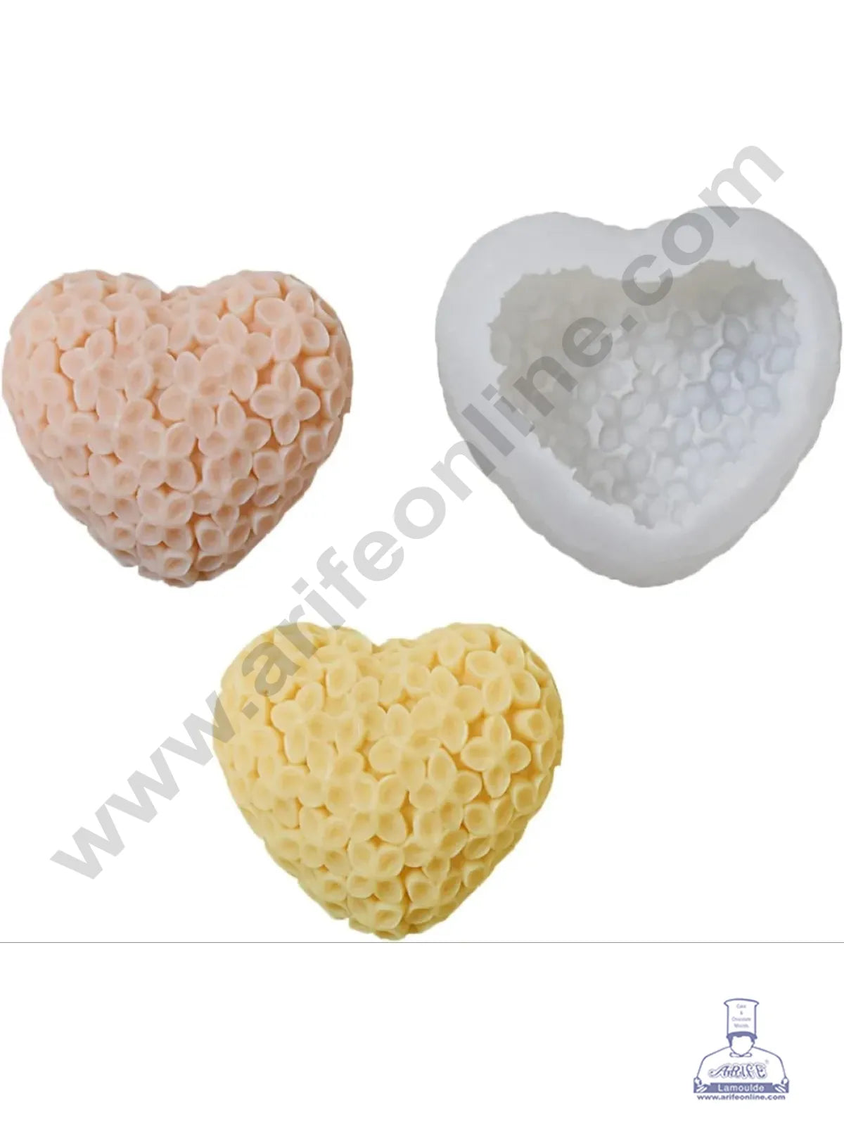 CAKE DECORβ’ 3D Silicon 1 Cavity Heart Floral Pattern Shape Engraved Silicon Candle Mould, Silicon Soap Mould, Handmade Decorative Soap Ornament Making (SBSP-DYF7337)