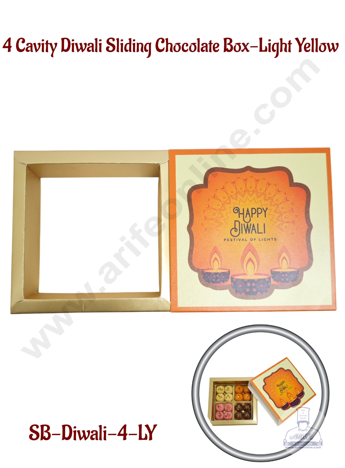 4 Cavity Diwali Sliding Chocolate Box Without Cavity – :ight Yellow (10 Pcs Pack) – CAKE DECORβ„’