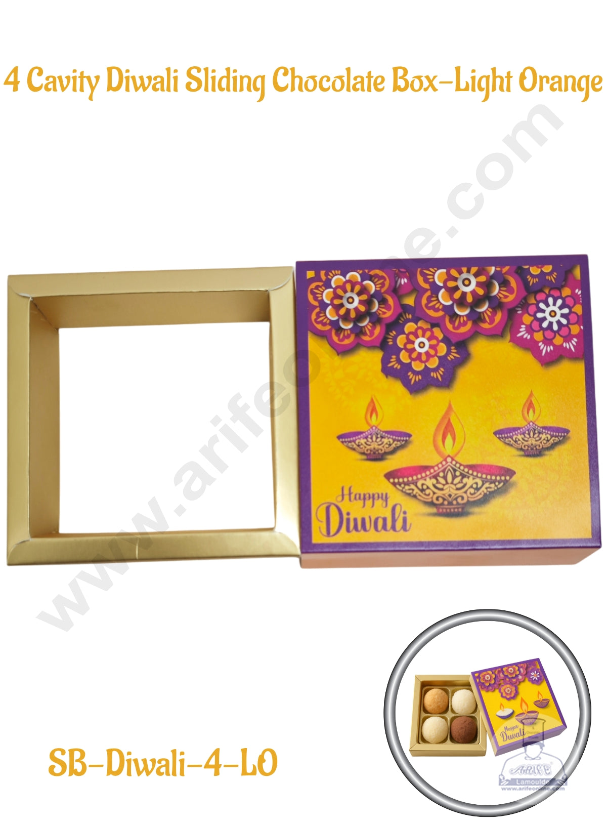 4 Cavity Diwali Sliding Chocolate Box Without Cavity – Light Orange (10 Pcs Pack) – CAKE DECORβ’
