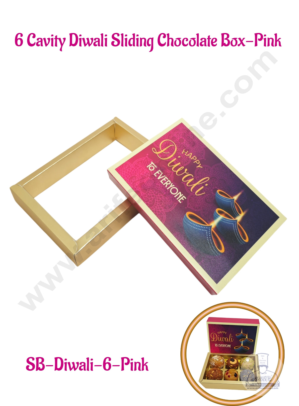 6 Cavity Diwali Sliding Chocolate Box Without Cavity – Pink (10 Pcs Pack) – CAKE DECORβ„’