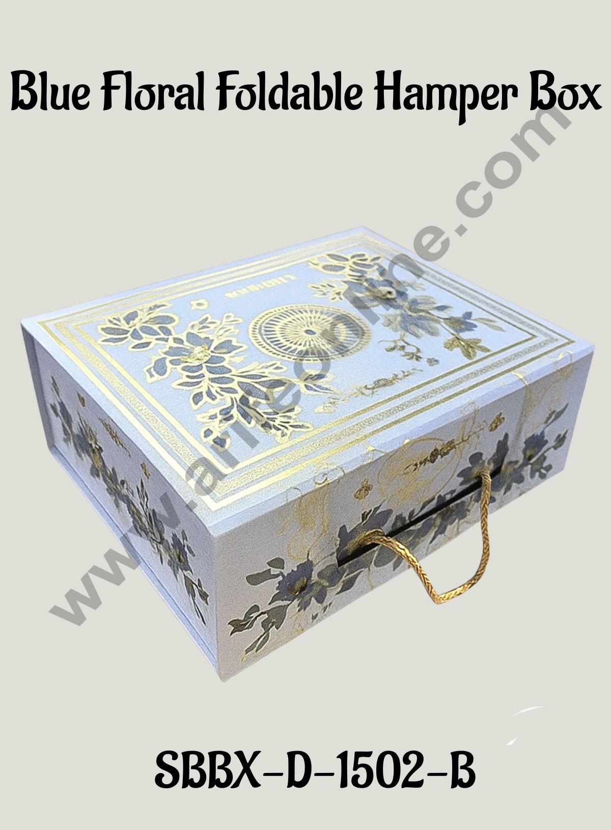 Blue Floral Foldable Hard Hamper Box With Handle | Gift Box | Present Box – 1 Pc – CAKE DECORβ’