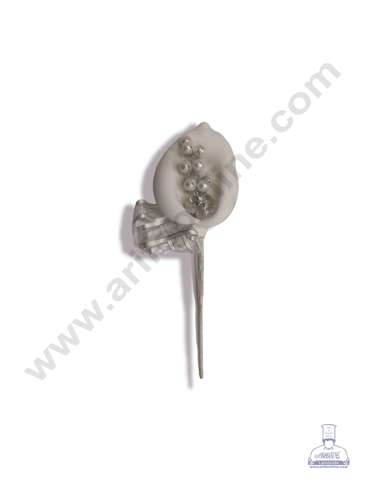 Cake Decorβ’ 1 Stick With Pearl And Ribbon Artificial Flower For Cake Decoration β White