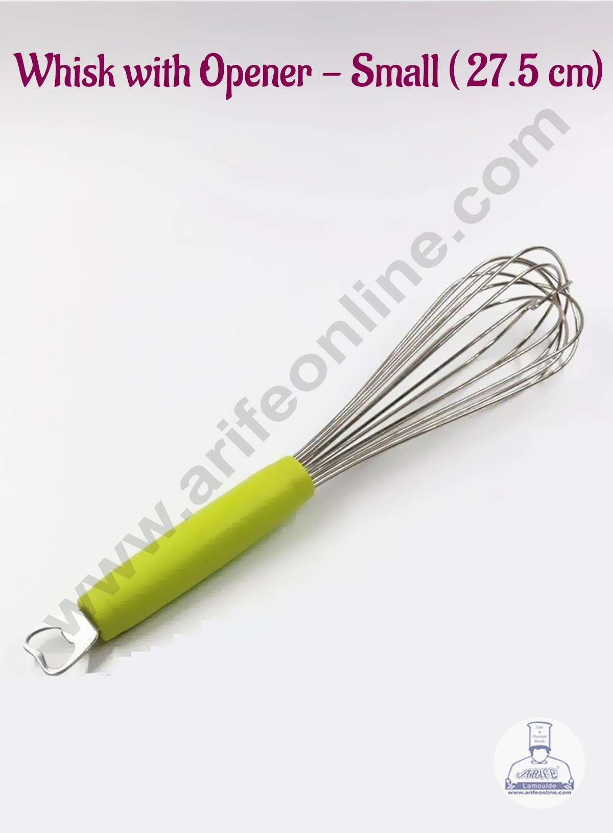 CAKE DECOR™ 1 Pcs Small Thick Wire Stainless Steel Whisk with Bottle Opener Egg Beater Potato Masher with Plastic Handle Feature: A good whisk will help greatly in the kitchen with versatile ability to whisk, beat, thicken, froth, blend and stir any number of your favorite creations. The joy of serving up to family and…