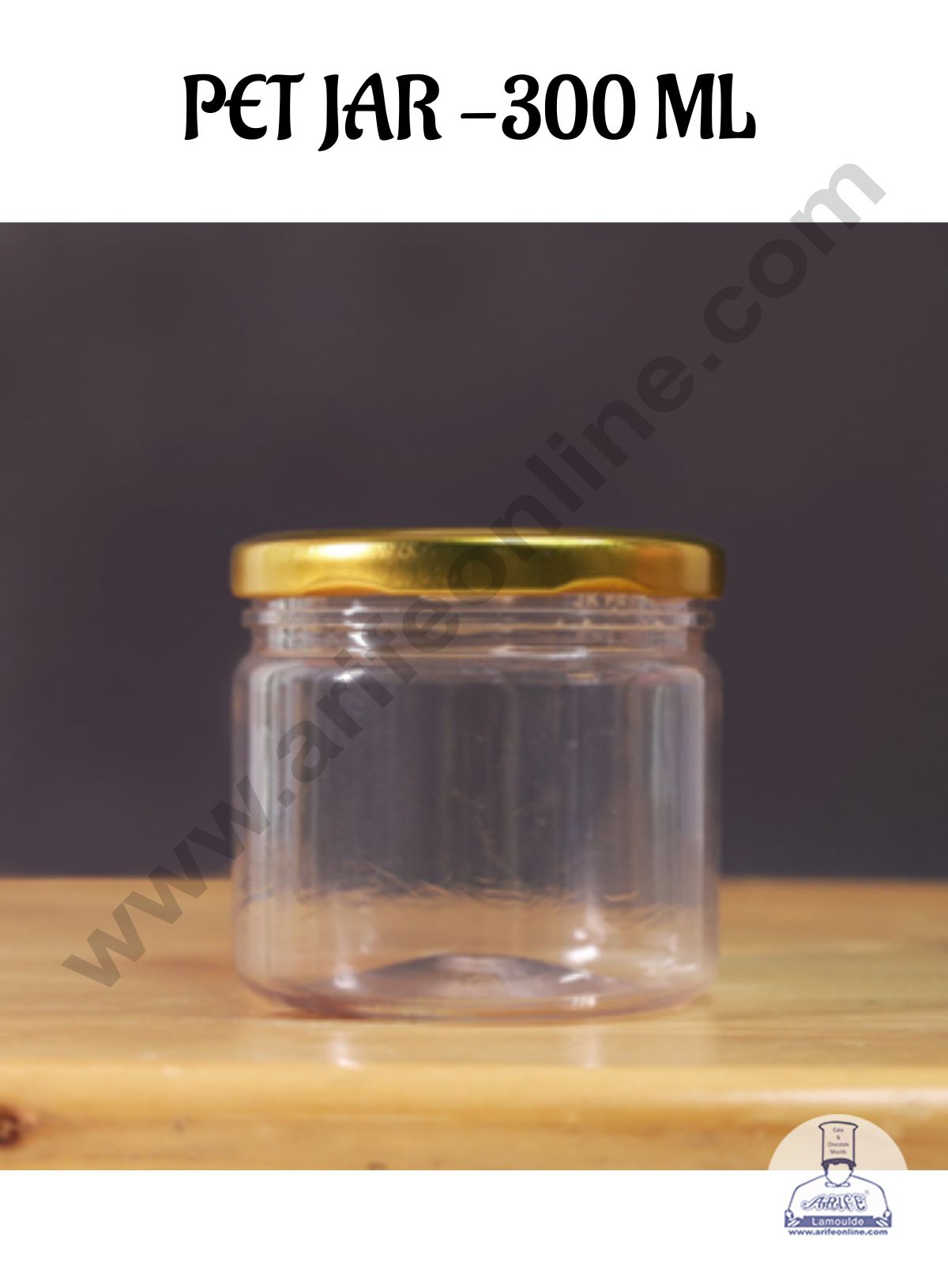 CAKE DECOR™ 1 Piece Plastic Transparent Cookies Jar With Golden Cap – 300 ml