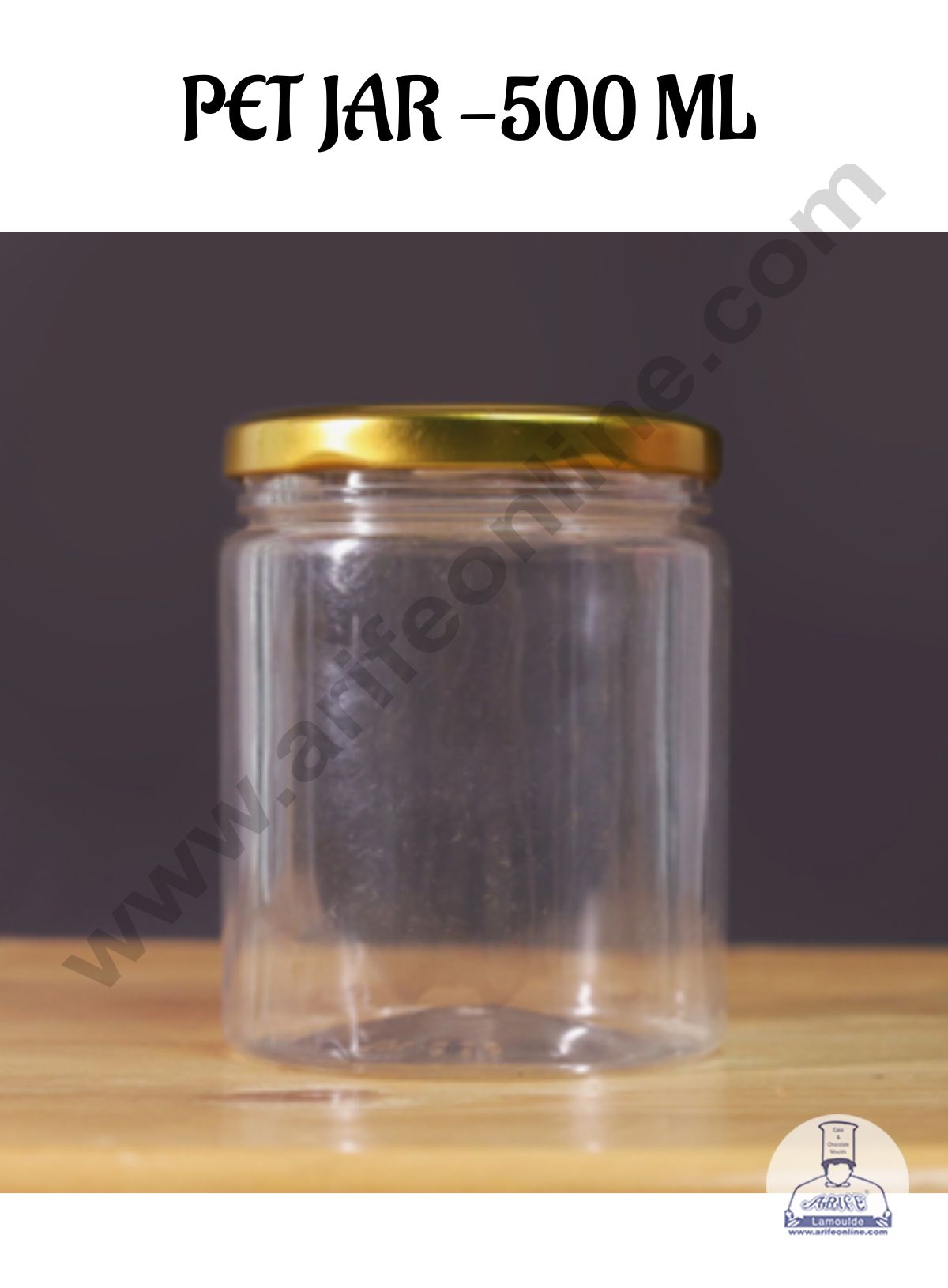 CAKE DECOR™ 1 Piece Plastic Transparent Cookies Jar With Golden Cap  – 500 ml