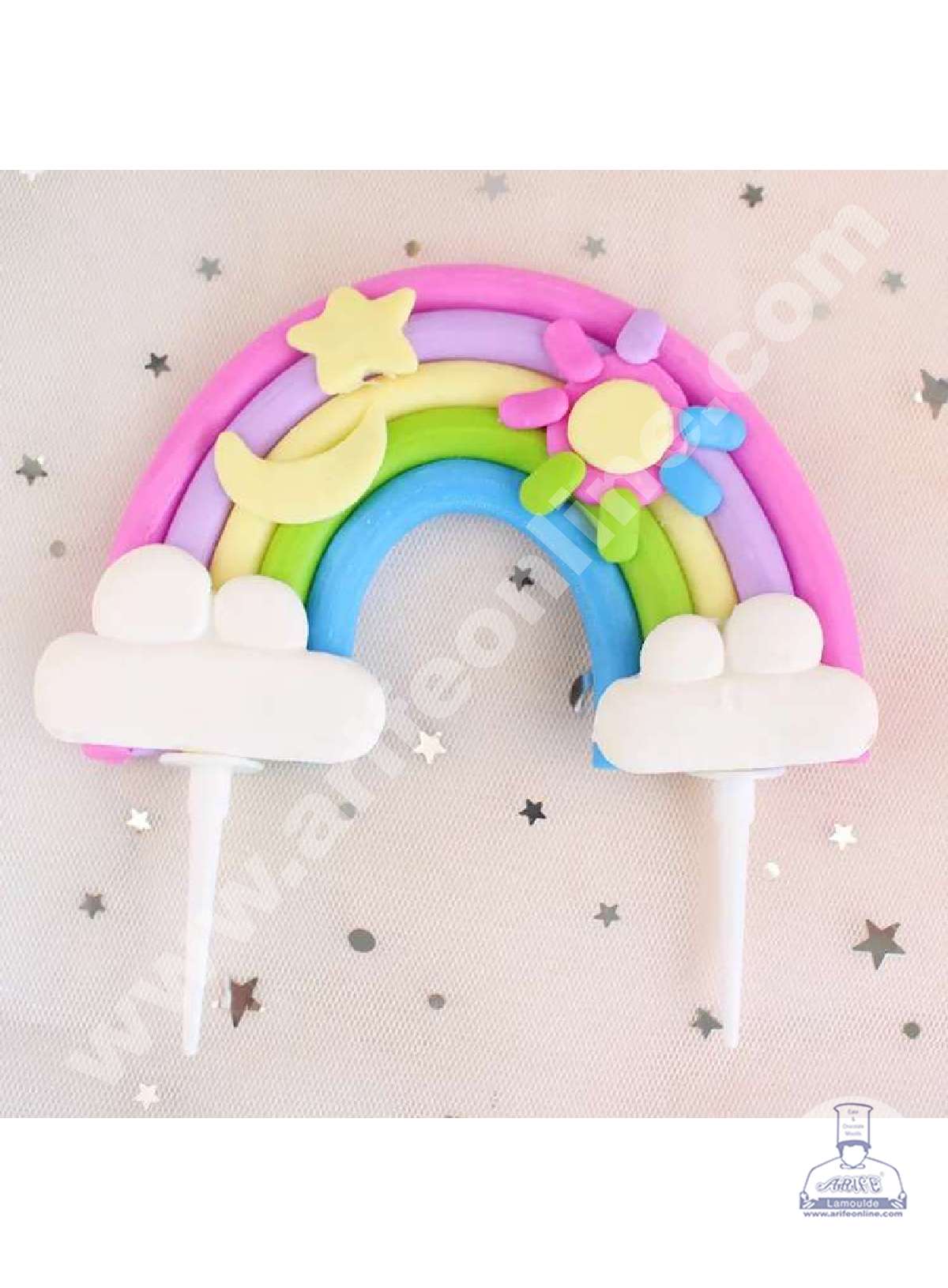 CAKE DECOR™ 1 Pieces Rainbow with Clouds, Moon, Star & Sun Cake Toppers (SBRainbow-011) Features: Our rainbow cake topper is suitable for all kinds of cakes, such as birthdays, weddings, baby showers, anniversaries, Christmas, thanksgiving and more. Quality material : Made of high-quality polymer clay, durable and reusable, non-toxic and safe to use.but not edible,…