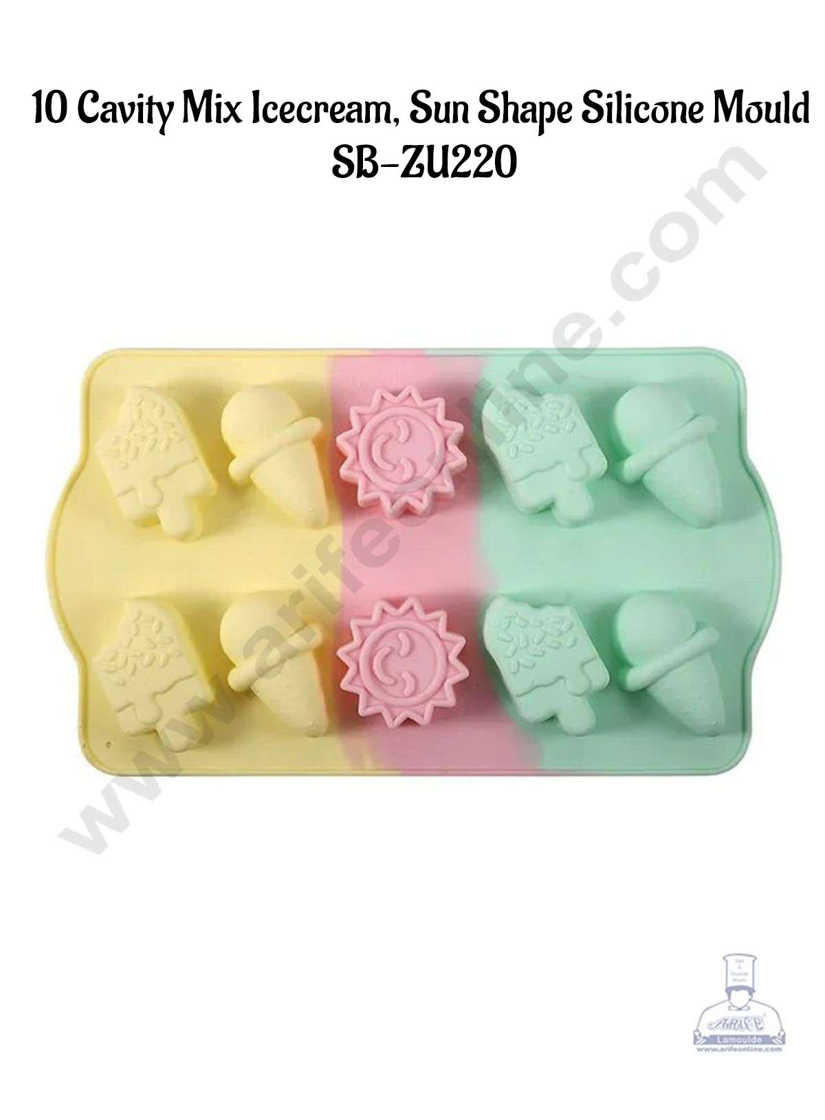 CAKE DECOR™ 10 cavity Mix Icecream, Sun, Lolly-Sticks Shape Rainbow Silicone Mould SB-ZU220