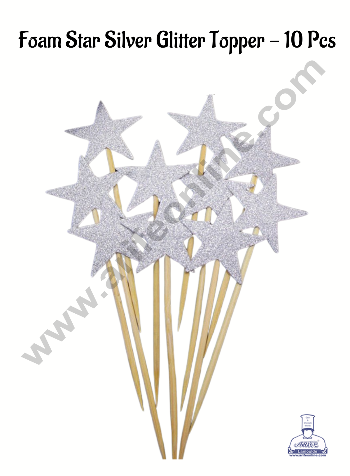 CAKE DECOR™ 10 Pcs Foam Star Silver Glitter Topper For Cake And Cupcake Decoration Features : Product material : Foam . Save time, no assembly, easy to use. Very nice and sturdy cake topper. Safe and non-toxic, can be used with confidence. Celebrate your Occasion with this adorable cake topper. Perfect for photos to remember…