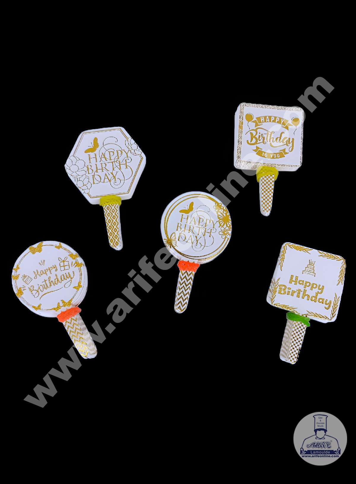 CAKE DECOR™ 100 pcs White Golden Happy Birthday Mix Designs Paper Topper For Cake And Cupcake (SBMT-PT-137)