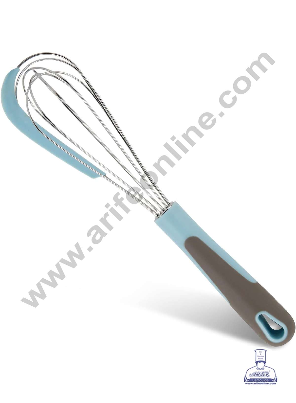CAKE DECORβ’ 12.5 inch Whisker Silicone Handle Stainless Steel Wire Whisk with in-built Silicone Scraper