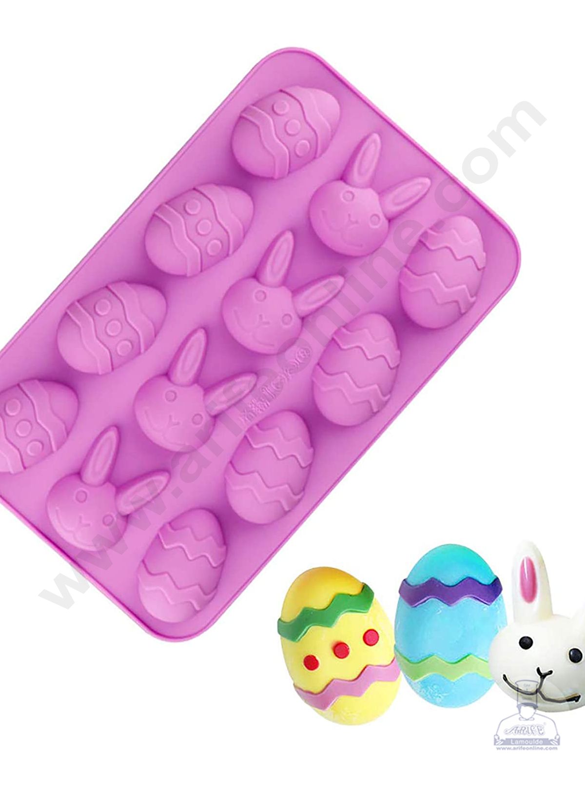 Cake Decor 12 Cavity Easter Egg And Rabbit Silicon Muffin Mould (SBSM-822)