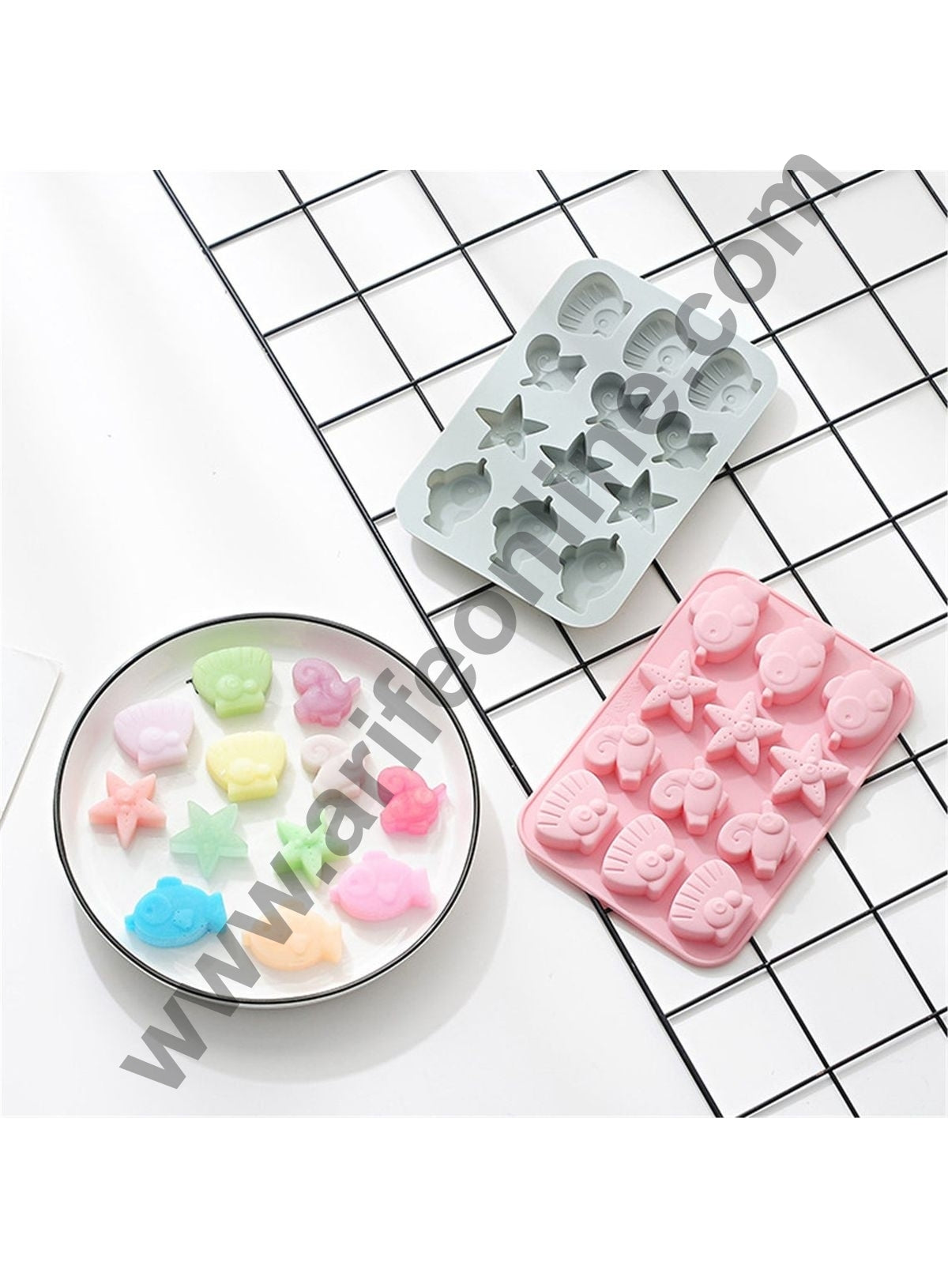 Cake Decor 12 Cavity Silicone Chocolate Mould Sea Life Theme Fish Star Shells Silicon Jelly Candy Moulds