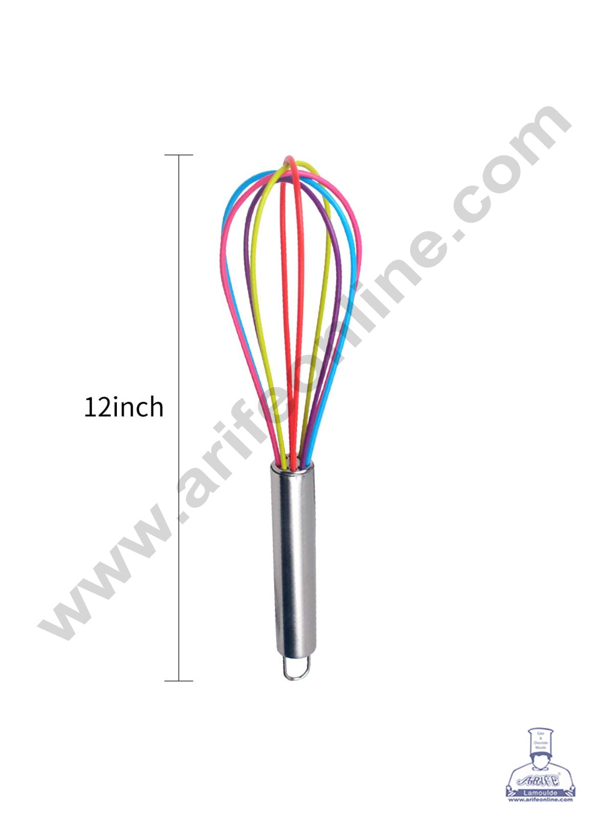 CAKE DECOR™ 12 inch Silicone Whisk with Stainless Steel Handle | Silicone Wire Whisk – Multi Color