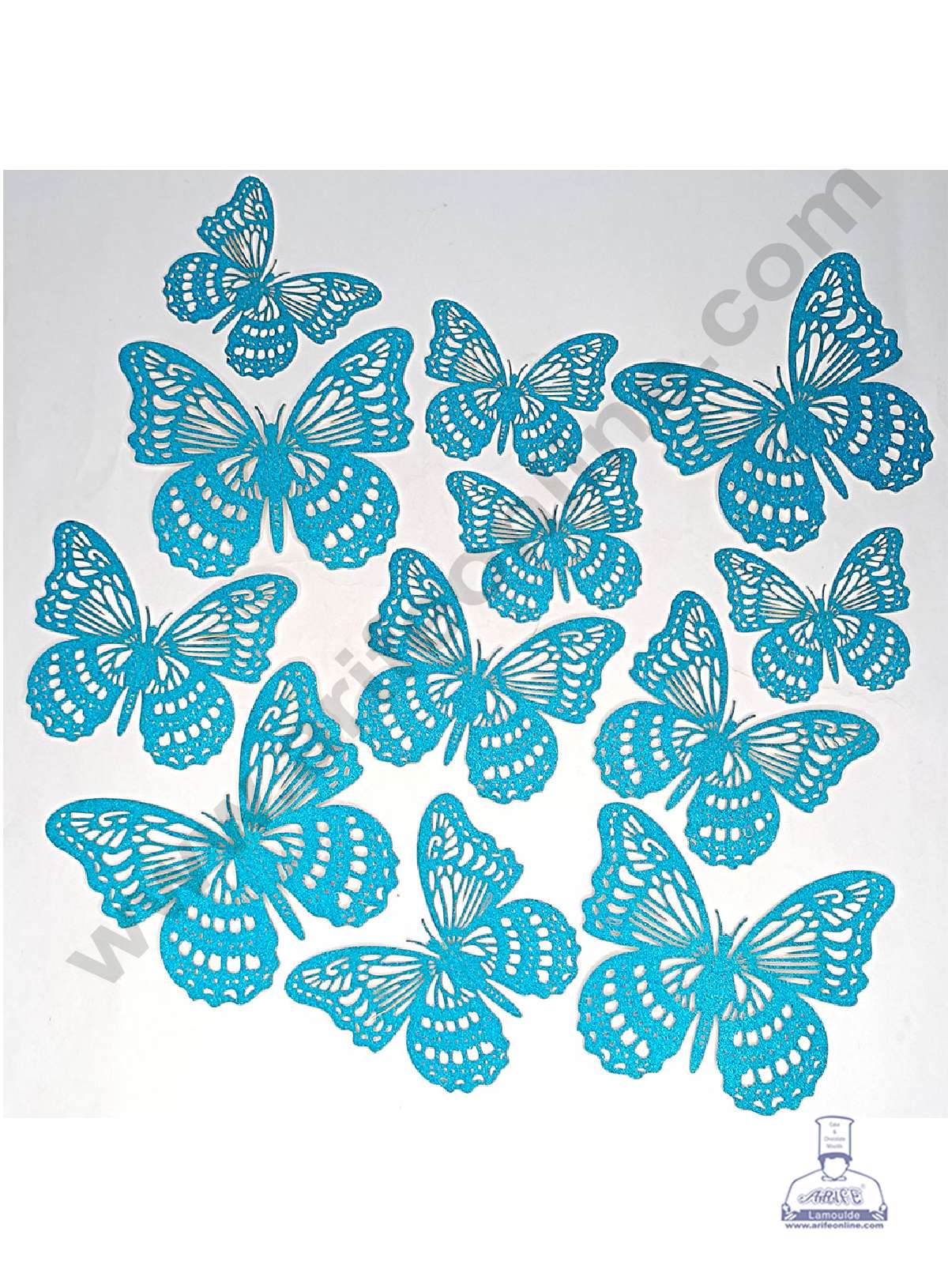 CAKE DECOR™ 12 pcs Glitter Blue Imported Butterfly Paper Topper For Cake And Cupcake