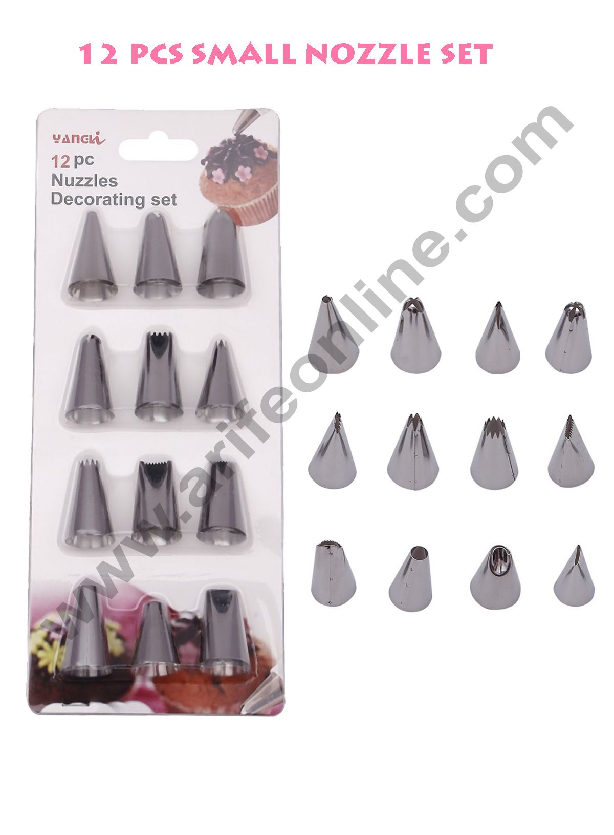 Be the first to review “Cake Decor 12 Small Piece Stainless Steel Cake Decorating Set Tips with Steel Nozzles. Reusable & Washable.”