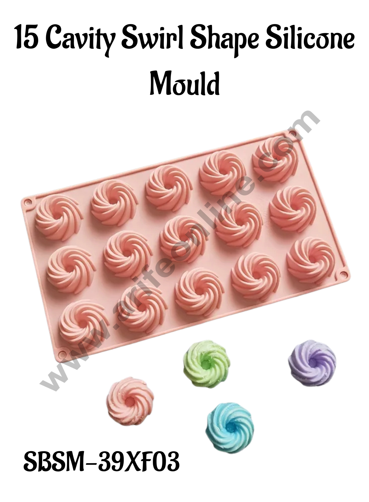 CAKE DECOR™ 15 Cavity Swirl Shape Silicone Mould – Perfect for Chocolates, Candies & Mini Desserts