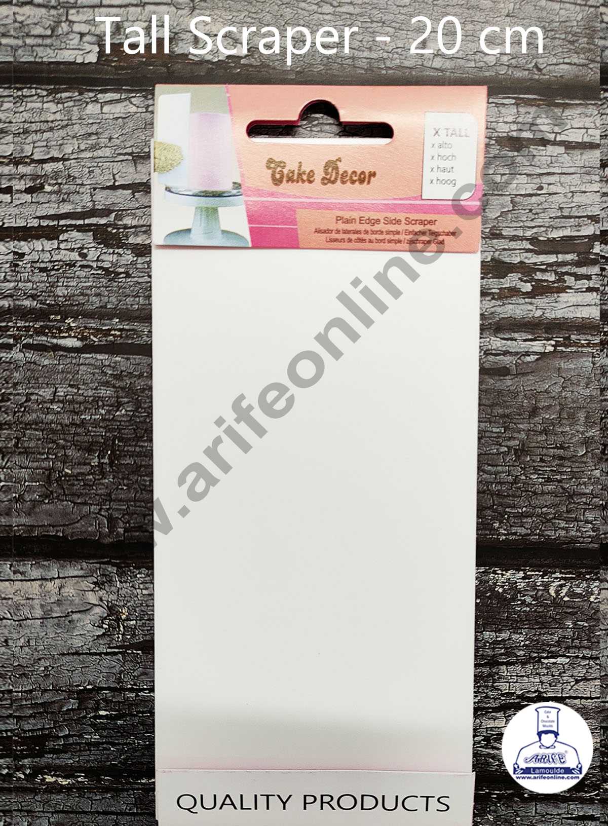 CAKE DECORβ’ 1pc Plastic Tall Cake Scrapper Medium β 20 cm ( ZN-2777 ) Feature: Hand held and easy to clean. Professional quality Dishwasher safe Size: 20 X 9.5 CM Description Perfect set for decorating Create stunning confections, Perfect for novices or professionals Made with different serrated tooth and different shapes Use to create designs…