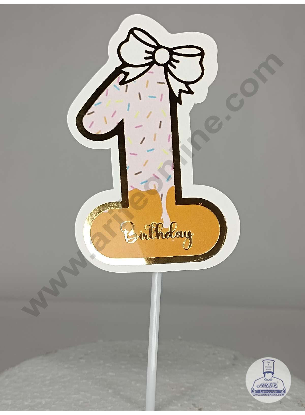 CAKE DECOR™ 1st Birthday Pink Donut Theme with Bow Paper Topper For Cake And Cupcake ( SBMT-PT-01P )