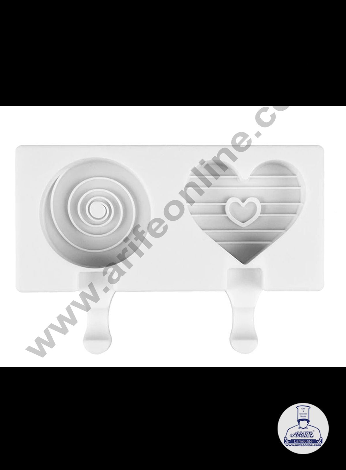 Cake Decor 2 Cavity Swirl Round And Heart In Heart Shape Silicone Popsicle And Cakesicle Molds Easy Ice Cream Bar Mould SBSM-746