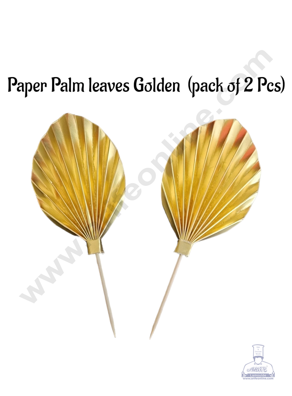CAKE DECOR™ 2 pcs Gold Palm Leaves Paper Topper For Cake Decoration – Gold ( SBMT-PL-12 )