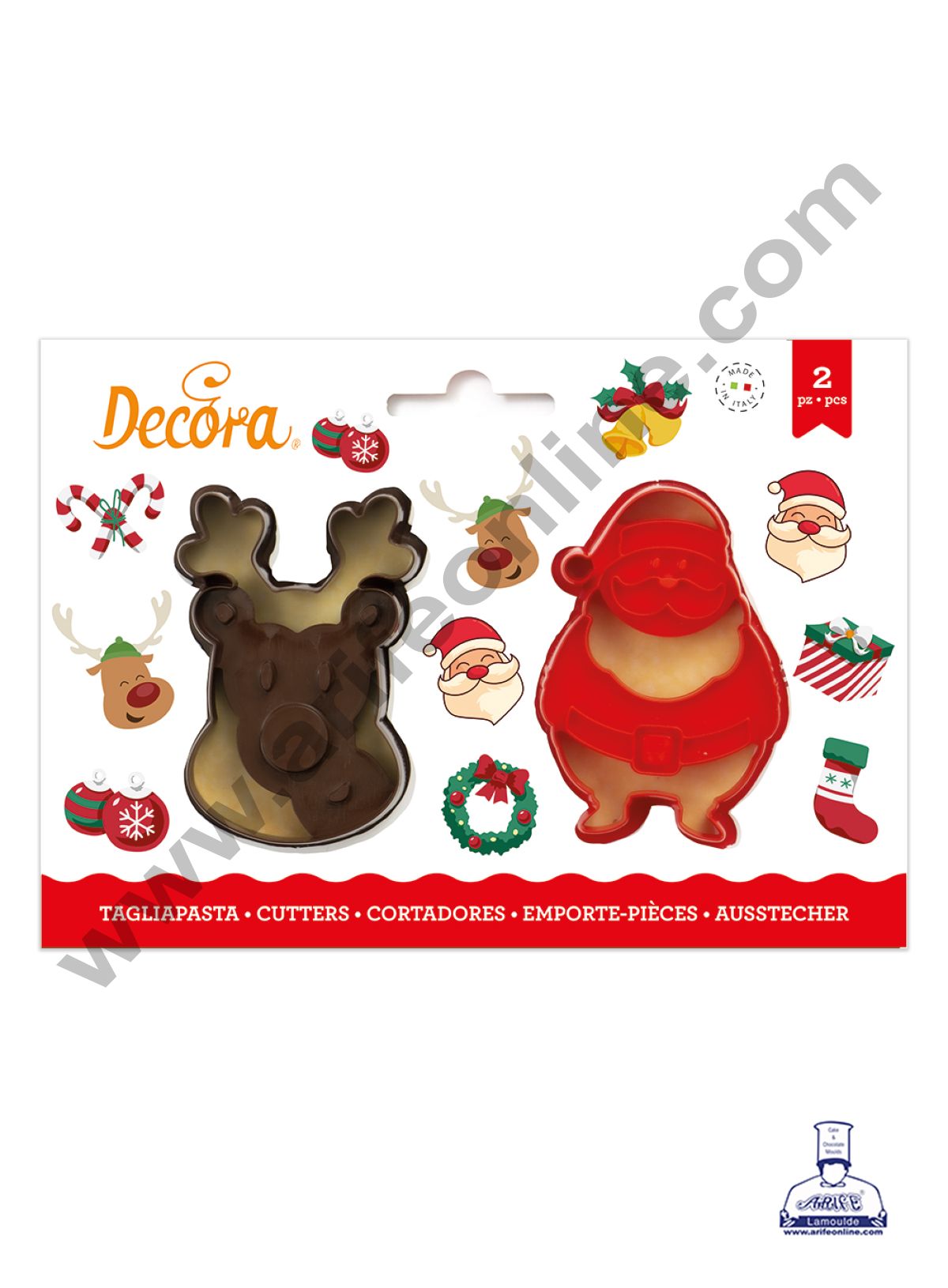 CAKE DECORβ’ 2 pcs Santa Claus and Reindeer Plastic Cookie Cutter Set | Christmas cookie Cutter Product Description Material : Plastic Color : Random Dimensions : Santa : 8 X 7.6 X 2 cm , Reindeer : 8 X 5 X 2 cm Quantity : 2 pcs β’ Set of 2 versatile plastic cutters β’…