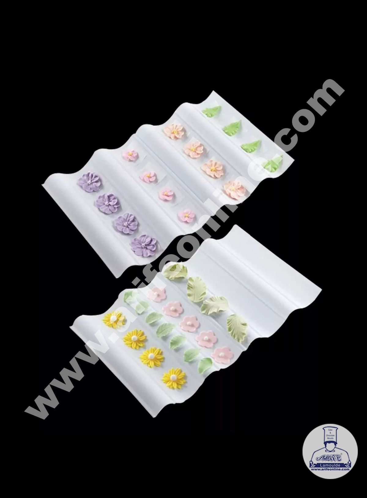 Now you can create a beautiful flower that holds their shape with this Wave Flower Former Set. This former set is perfect for ribbons, bows, leaves, and flowers and features concave and convex surfaces. Use this convenient connecting platform to dry flowers, leaves and other decorations in royal icing, gum paste or fondant.Its wavy curved shape makes it easy to dry concave or convex shapes.Large drying area is great for ribbons, bows, and streamers.he set includes two separate wave former’s. By connecting both the platforms together you can create a large drying area. It is made up of high food grade plastic material. It is very easy to use and clean.It is Reusable and dishwasher safe.