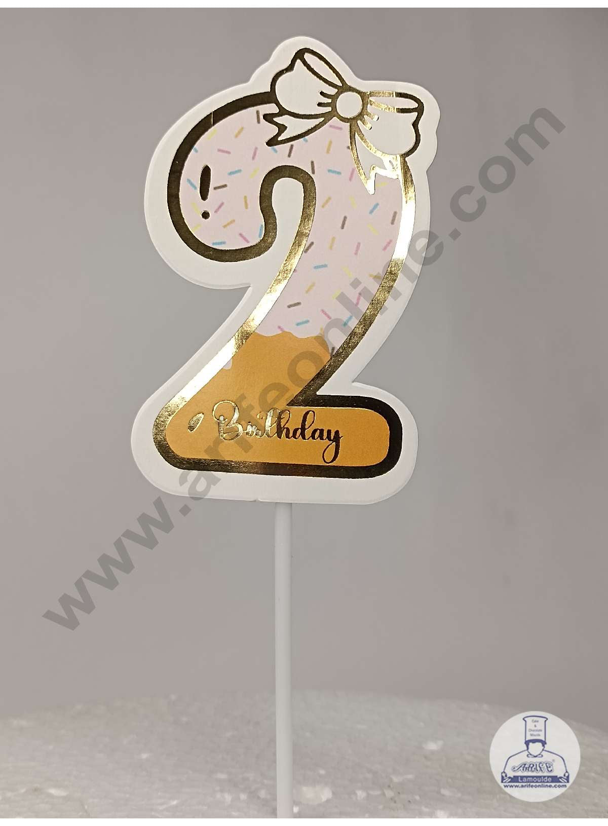 CAKE DECOR™ 2nd Birthday Pink Donut Theme with Bow Paper Topper For Cake And Cupcake ( SBMT-PT-02P )