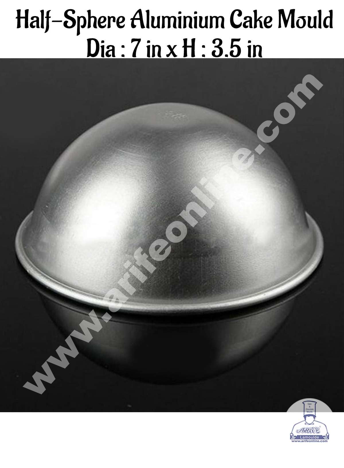 Cake Decor 2pcs Aluminum Half Sphere Ball Cake Mould, Round Cake Molds,Dome Cake Moulds ( 7 inch Diameter X 3.5 inch Height) No.7 Package included: 2 x Half Shere Ball Cake Mold Material: Aluminum 1 Mold Size: 7 inch Diameter X 3.5 inch Height Reusable, durable and non-stick Ball cake mold , which is perfect…