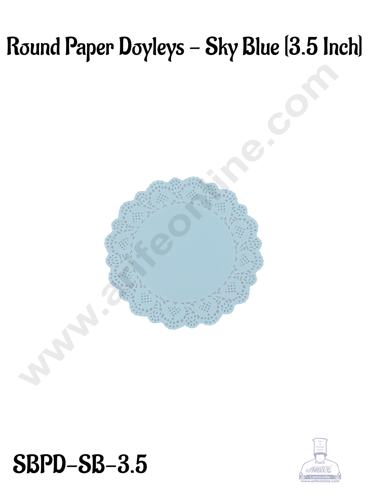 CAKE DECOR™ 3.5 inch Paper Doilies | Round Placemats | Decorative Accessories | Disposable Paper Mats – Sky Blue (100 pcs Pack)
