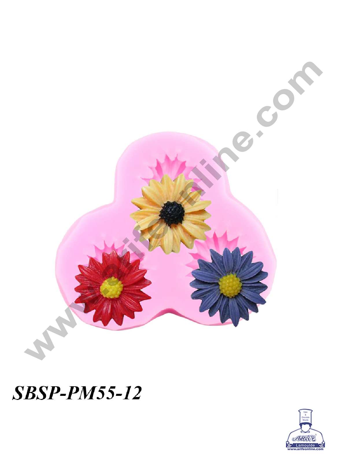 CAKE DECOR™ 3 Cavity Daisy Flower Shape Silicone Fondant Mould for Cake Decorations (SBSP-PM55-12)