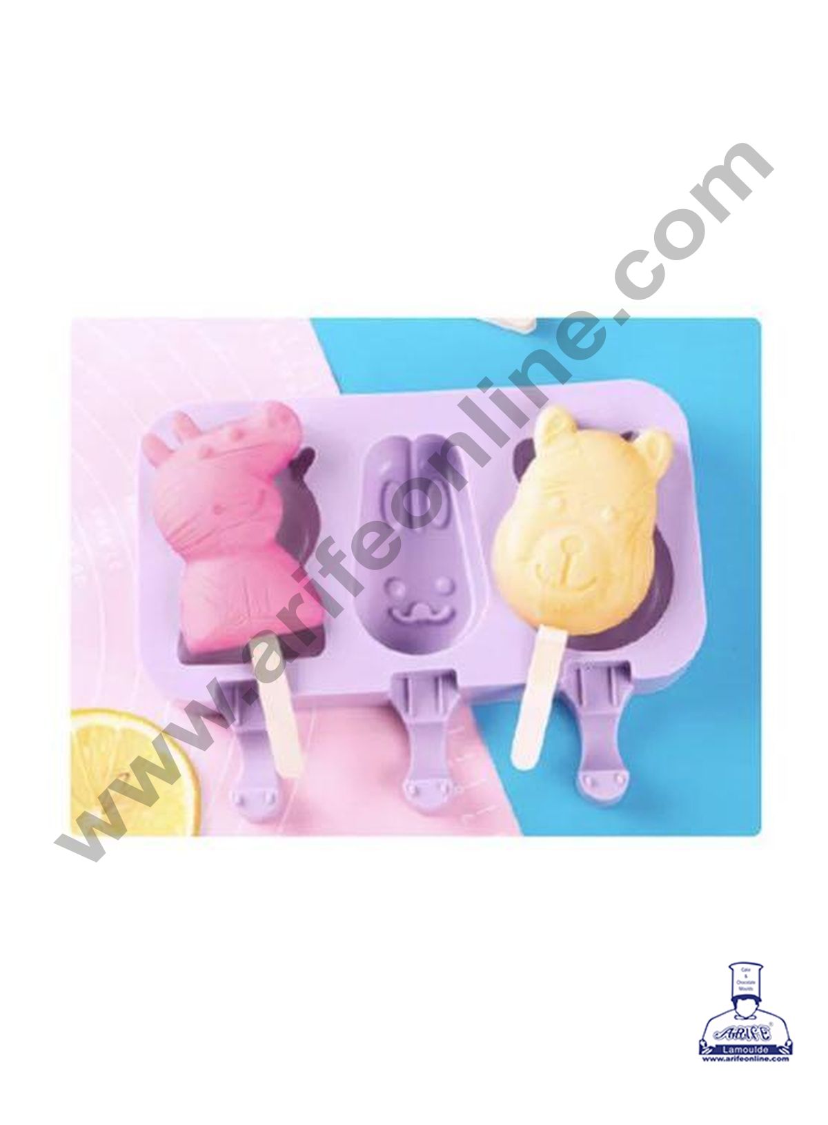 Cake Decor 3 Cavity Peppa Pig And Family Shape Silicone Popsicle And Cakesicle Molds Easy Ice Cream Bar Mould SBSM-744