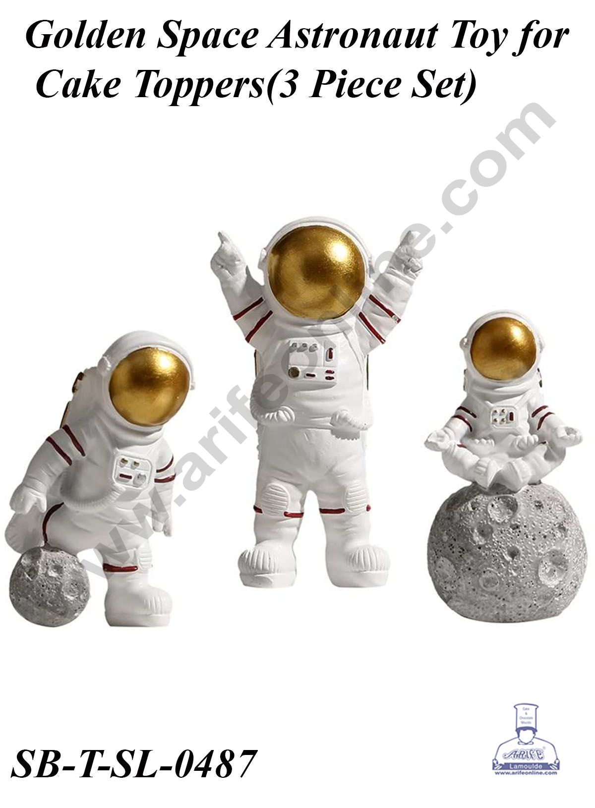 CAKE DECOR™ 3 Pcs Set Golden Space Astronaut Toy for Cake Toppers(SB-T-SL-0487)