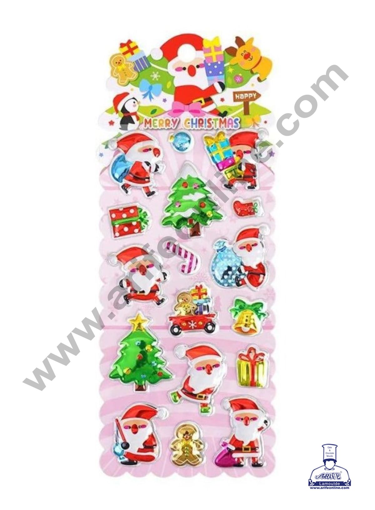 Cake Decor™ 3D Christmas Themed Stickers With Cute Santa Claus X-MAS Tree Reindeer Christmas Gift with 13 Blister Stickers Fun for Kids (1 Sheet)(Design- 04)