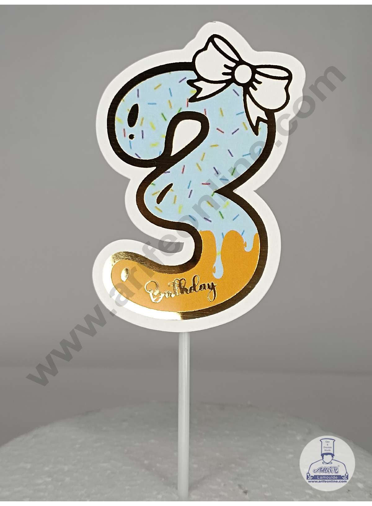 CAKE DECOR™ 3rd Birthday Blue Donut Theme with Bow Paper Topper For Cake And Cupcake ( SBMT-PT-03B )