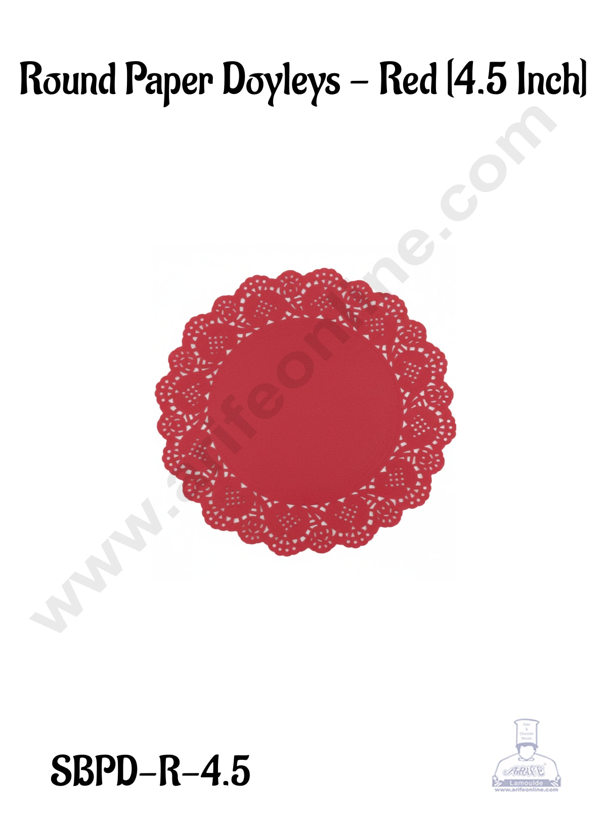 CAKE DECOR™ 4.5 inch Paper Doilies | Round Placemats | Decorative Accessories | Disposable Paper Mats – Red (100 pcs Pack)