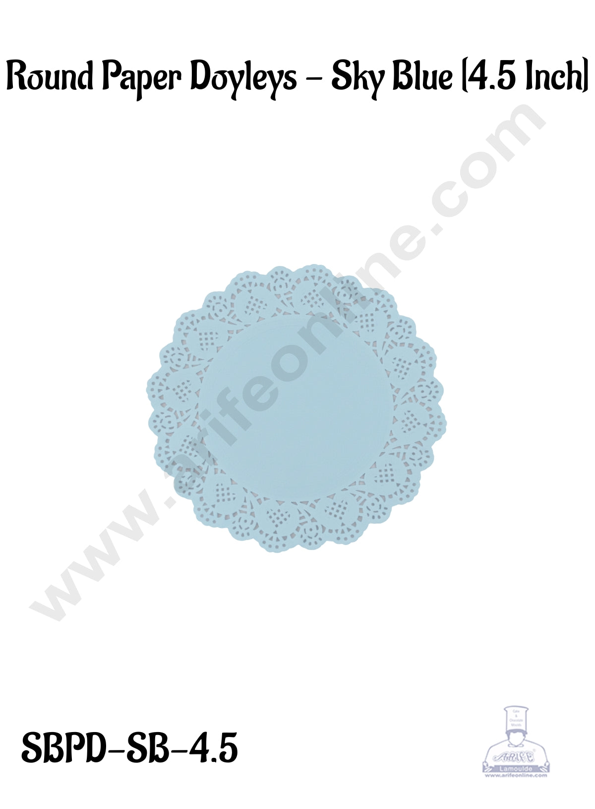 CAKE DECOR™ 4.5 inch Paper Doilies | Round Placemats | Decorative Accessories | Disposable Paper Mats – Sky Blue (100 pcs Pack)