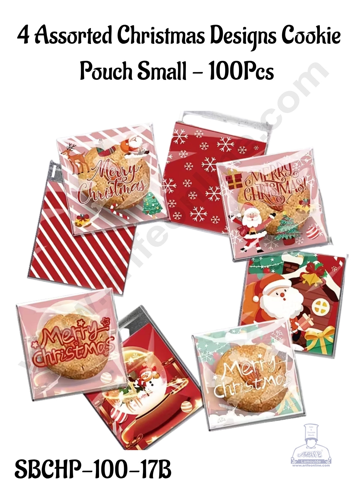 CAKE DECORβ’ 4 Assorted Christmas Designs Cookie Pouch Small – 100Pcs (Self Adhesive)(10x10x3 cm)