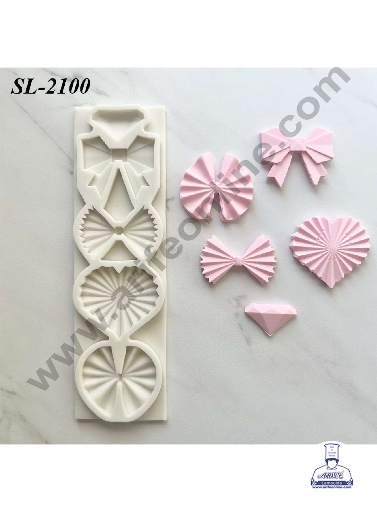 CAKE DECOR™ 4 Cavity Bows Heart Diamond Shape Silicone Fondant Mould for Cake Decorations (SBSP-SL-2100)