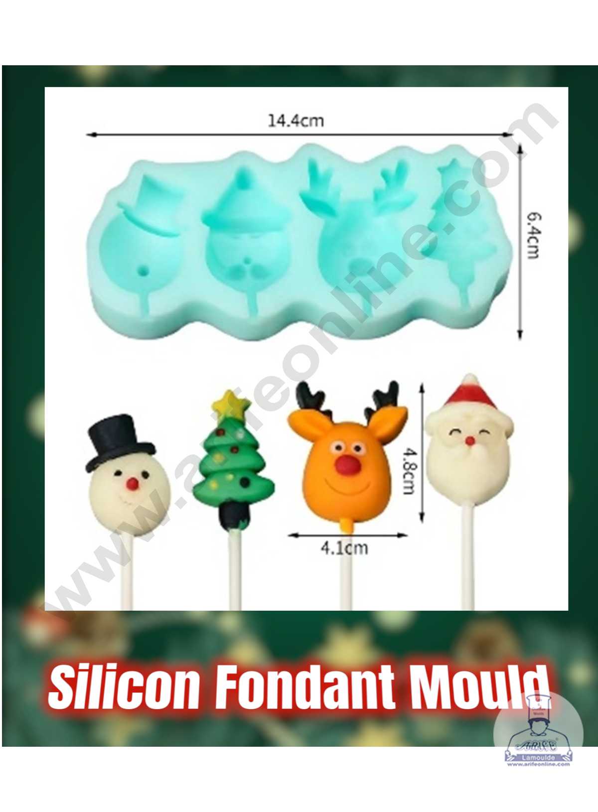 CAKE DECOR™ 4 Cavity Christmas Theme Silicone Fondant Mold Silicon Marzipan Mould SBSP-DYF6878 Made of silicone material, tasteless, non-toxic, flexible, dust resistant, reusable, non-stick and easy to clean. Suitable for making cake decoration, bread, mousse, jelly, prepared food, chocolate, etc. Be safe to use in ovens, microwaves, dishwasher, and refrigerator. Silicon Marzipan moulds are the…