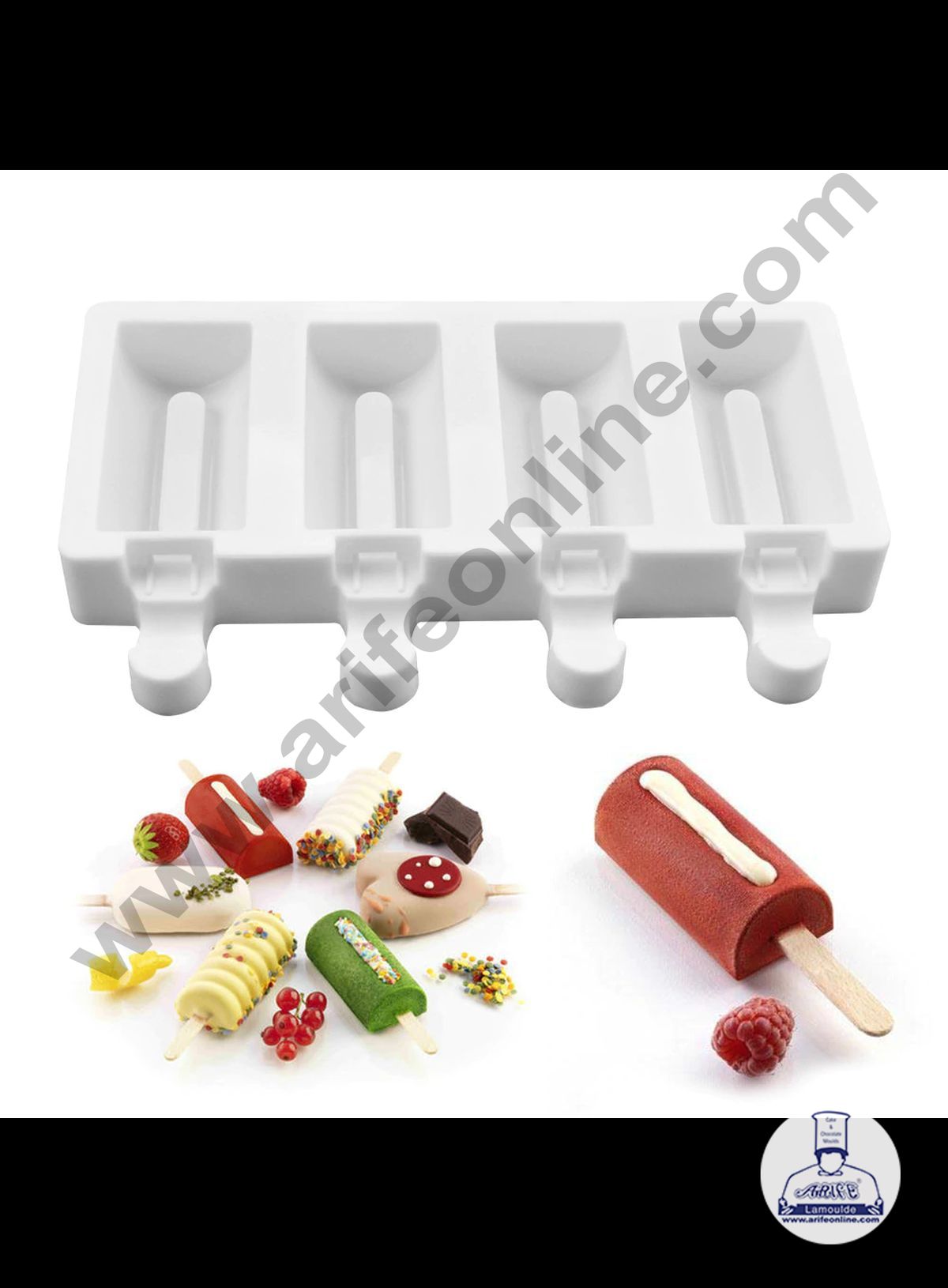 Cake Decor 4 Cavity White Classic Silicone Rounded with Groove Cakesicle Mold Popsicle Easy Ice Cream Bar Mold