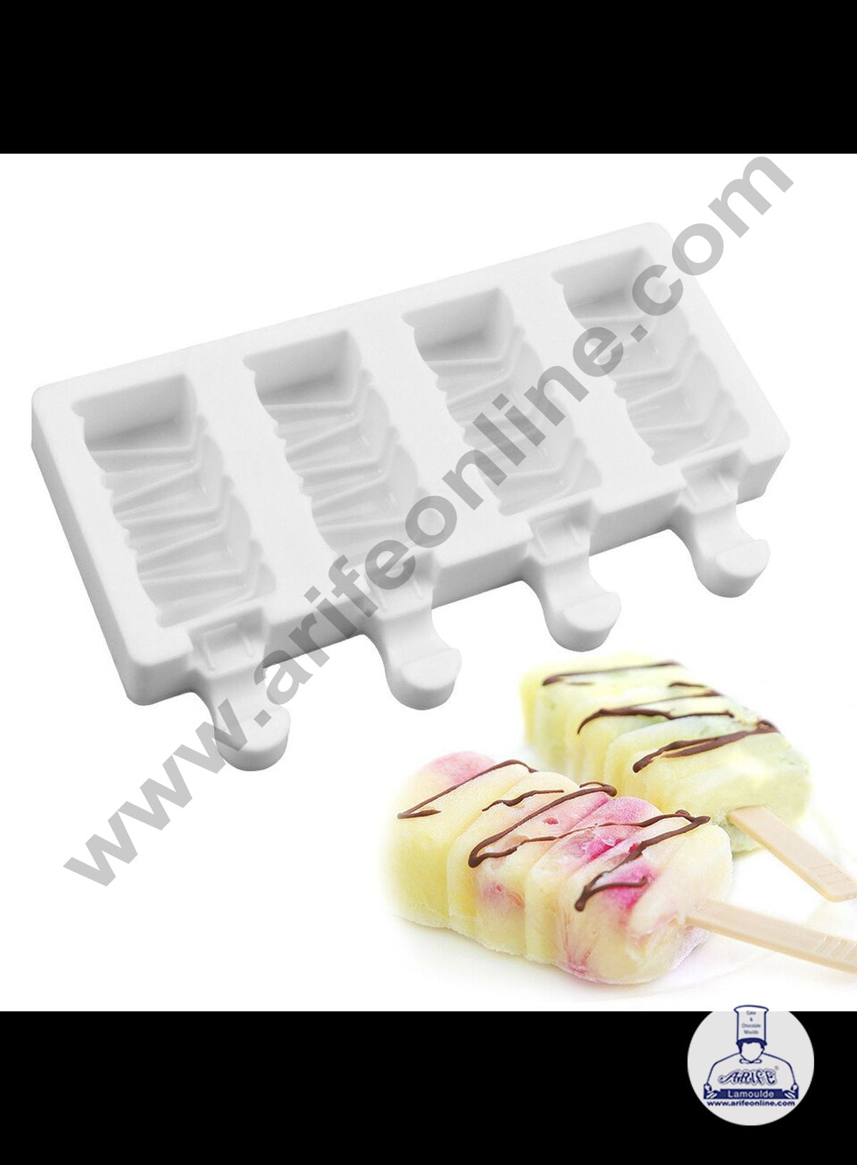 Cake Decor 4 Cavity White Classic Silicone Small Rectangle Cakesicle Mold Popsicle Easy Ice Cream Bar Mold