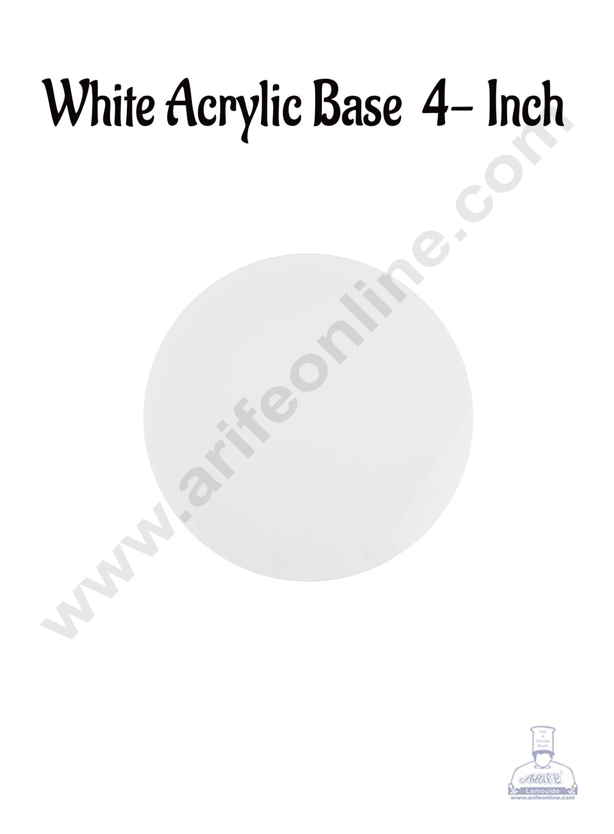 Cake Decor 4 Inch Round White Acrylic Cake Board Ganaching Plate (2mm thickness)