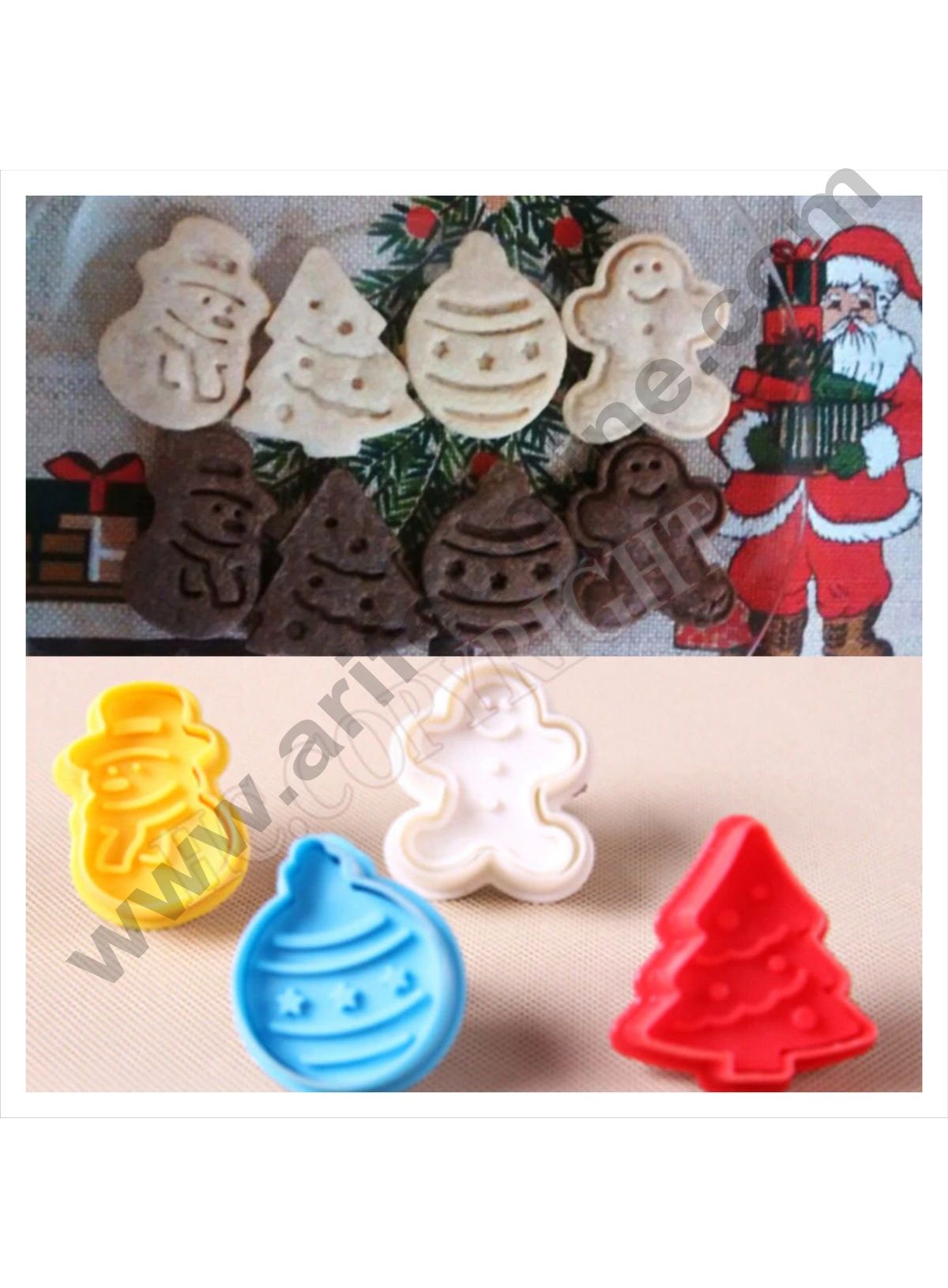 Cake Decor 4 Pc Christmas GingerBread Plastic Biscuit Cutter Plunger Cutter Description Ideal for use with Fondant Cakes, sugar paste, petal paste, marzipan DIY cooking or craft clays. Easy used and cleared. Take them to decorate your sweety cooking products. Material: plastic Christmas trees : 4.5 cm * 4.5 cm Gingerbread man : 4.5 cm…
