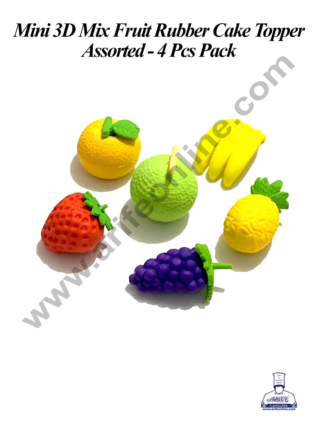 CAKE DECOR™ 4 Pcs Set Mini 3D Mix Fruit Rubber Cake Topper – Assorted (SBT-R-016)
