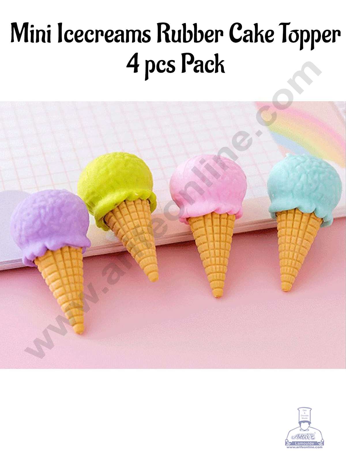 CAKE DECOR™ 4 Piece Mini Ice creams Rubber Cake Topper – 4 Pcs Set (SBT-R-004)