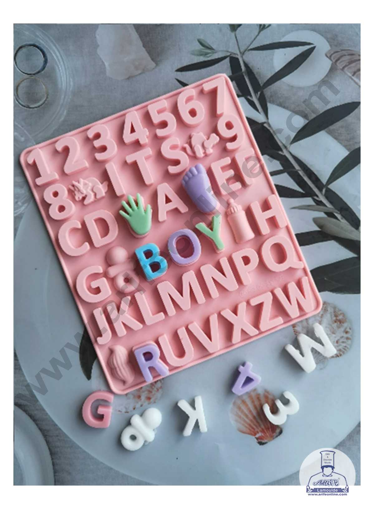 CAKE DECORβ’ 42 Cavity It’s A Boy Alphabet Number Shape Silicon Chocolate Mould | Baby Shower Theme (SBSM-873) Alphabet Number Shape Mould . Colour : As per the Availability . Silicon Moulds that are perfect as they do not crack easily as the plastic ones even while frozen. These Silicon moulds are fold-able & can…
