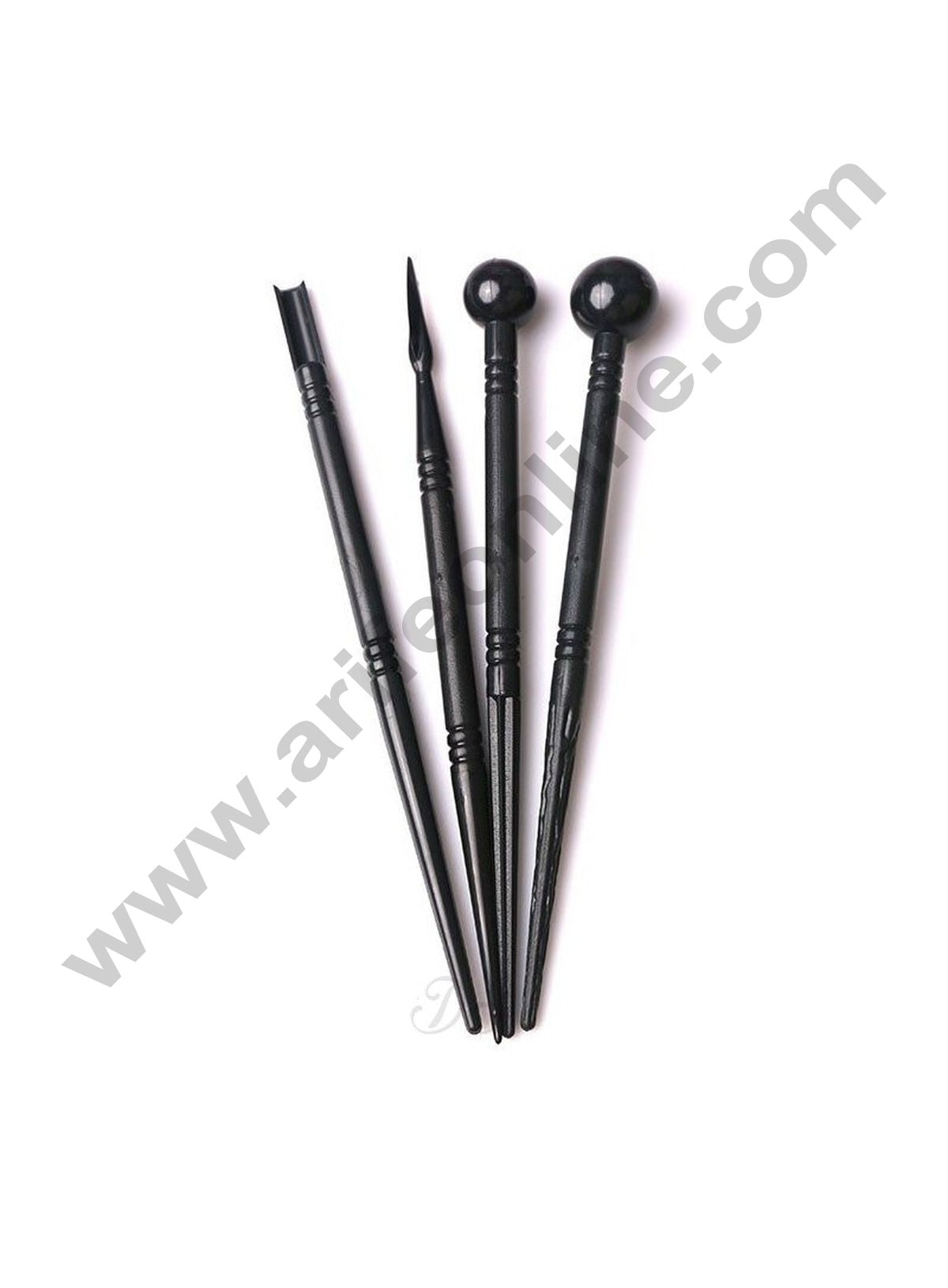 Cake Decor 4Pcs Black Cake Modelling Tools Set Fondant Clay Cutter Carve Pen Mould