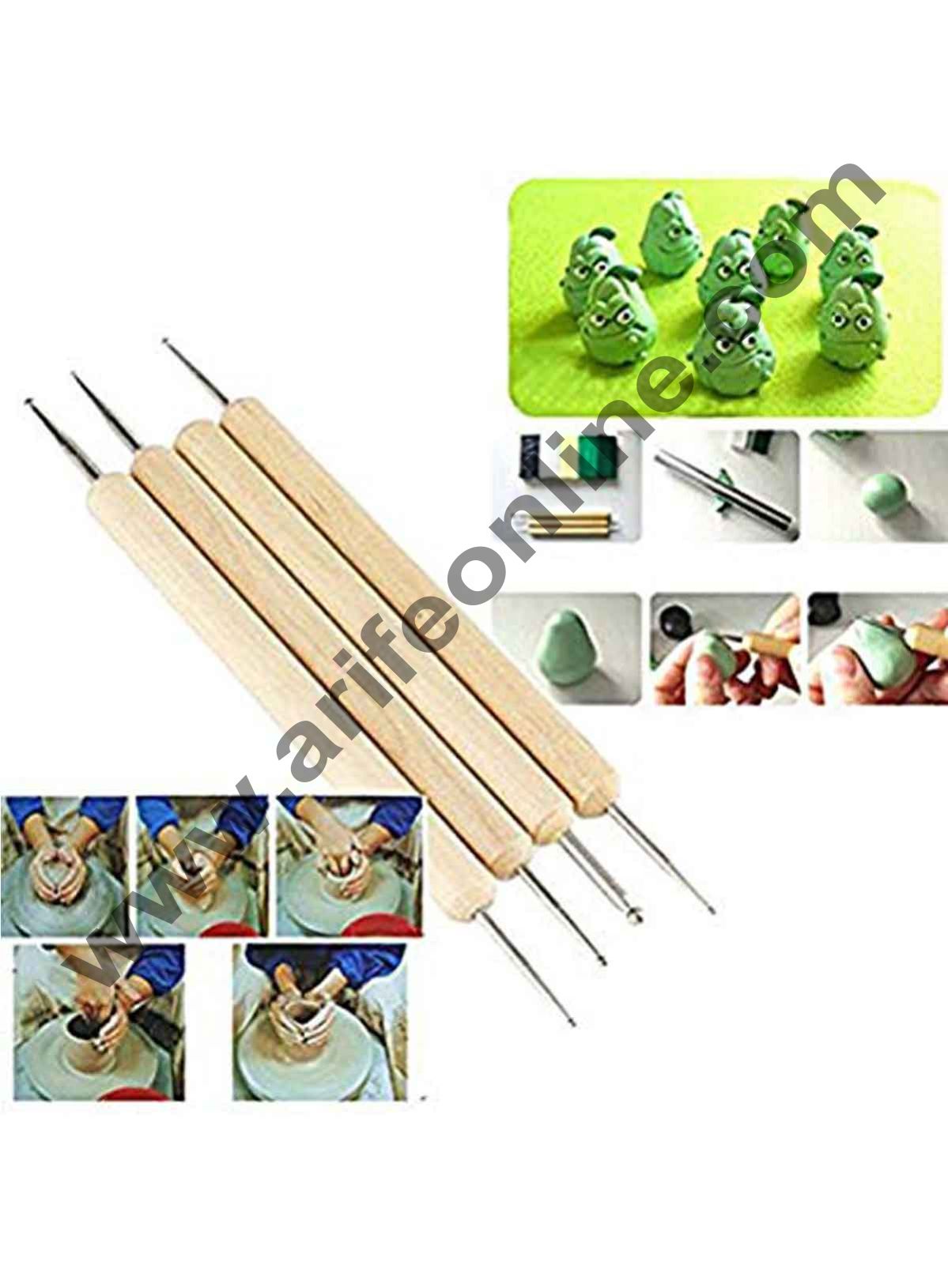 Cake Decor 4pcs Stainless Steel Ball Stylus Polymer Clay Pottery Ceramics Sculpting Handmade Modeling Tools Set with Wooden Handle and Painting Tool