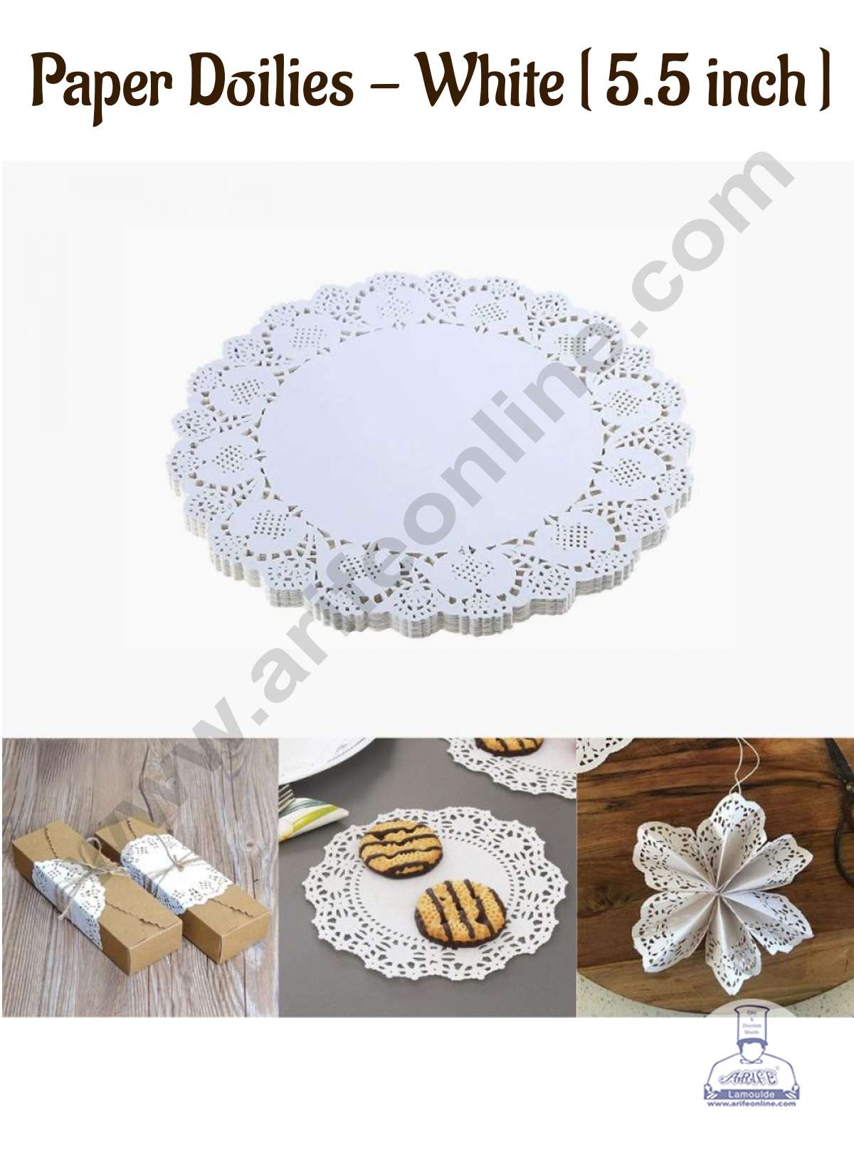 CAKE DECOR™ 5.5 inch Paper Doilies | Round Placemats | Decorative Accessories | Disposable Paper Mats – White (100 pcs Pack)