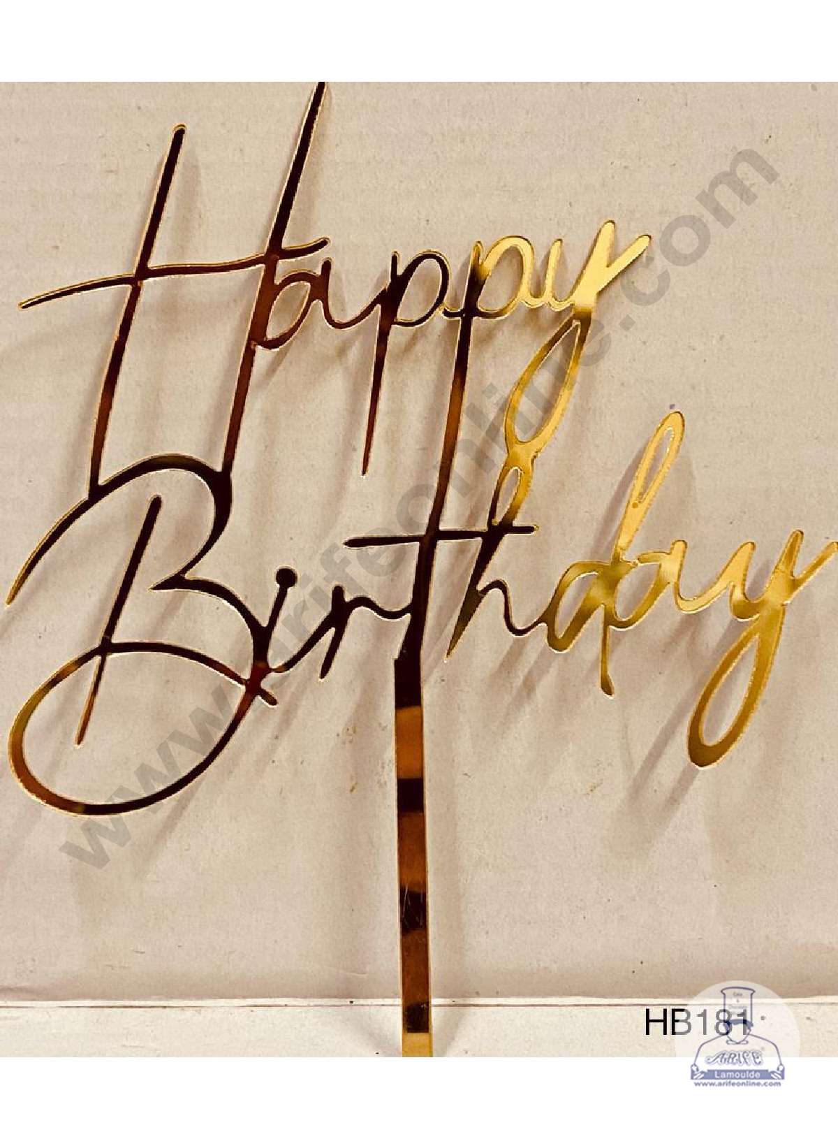 Gold Acrylic Classic Natural Happy Birthday Cake Topper.
